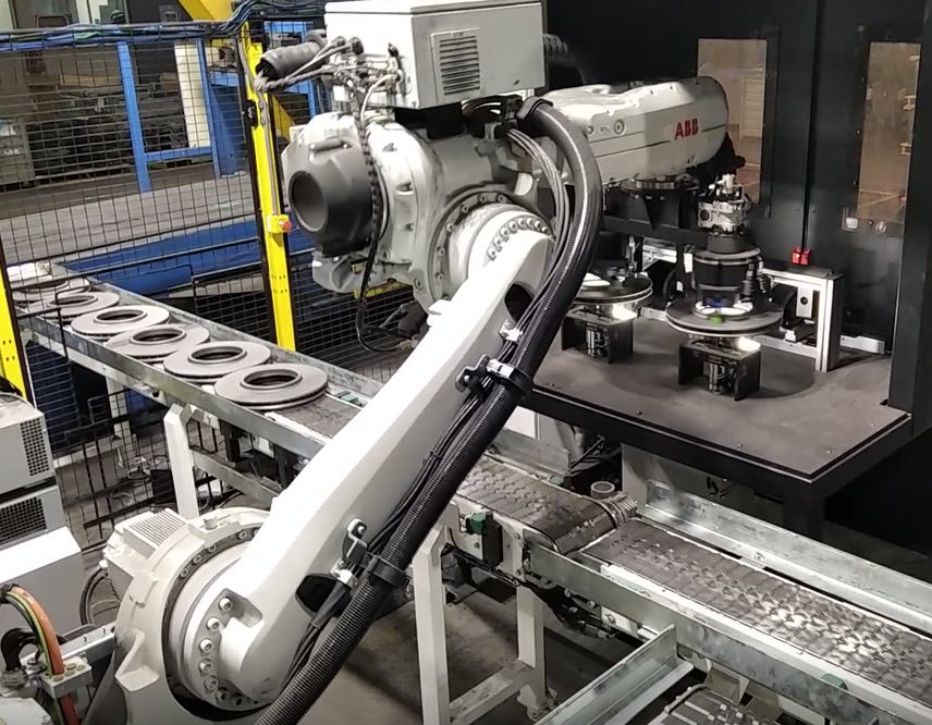En esta célula desarrollada por completo por Taucon, se hizo uso de un robot de 200kg ABB, así como de numerosos motores